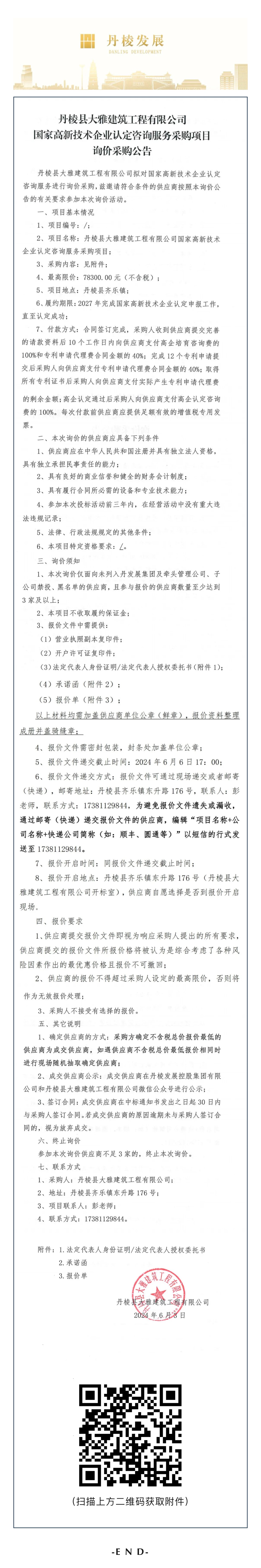 丹棱縣大雅建筑工程有限公司國家高新技術企業(yè)認定咨詢服務采購項目詢價采購公告