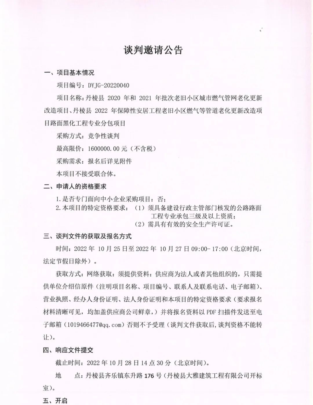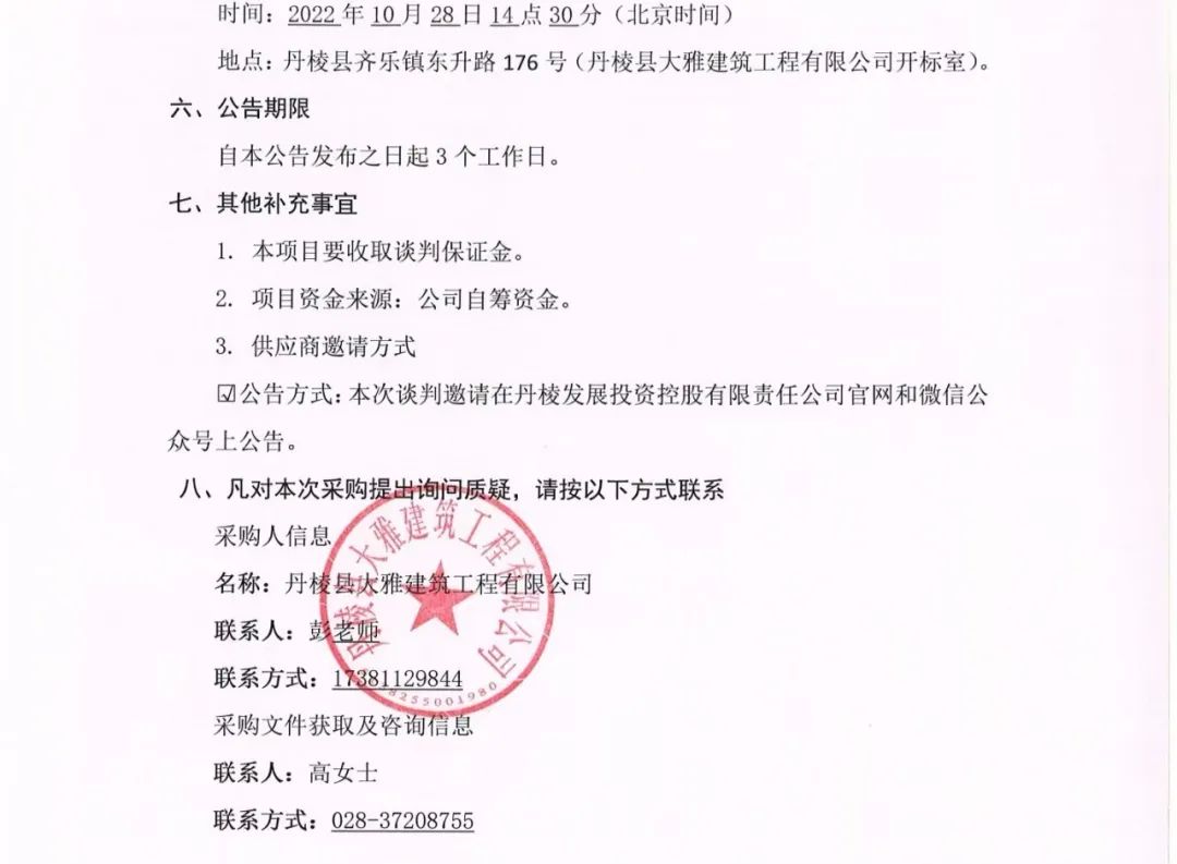 丹棱縣 2020 年、 2021 年、 2022 年保障性安居工程老舊小區(qū)燃?xì)獾裙艿览匣赂脑祉?xiàng)目路面黑化工程專業(yè)分包項(xiàng)目談判邀請公告