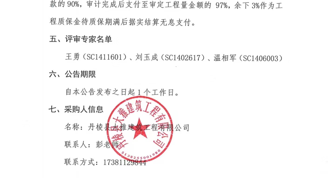丹棱縣2020年、2021年、2022年保障性安居工程老舊小區(qū)燃氣等管道老化更新改造項目路面黑化工程專業(yè)分包項目成交結(jié)果公告