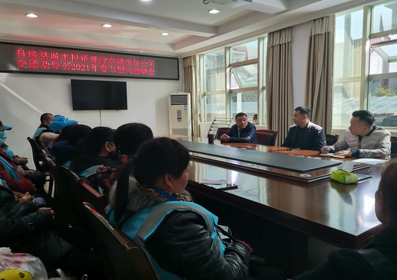 春節(jié)將至,歲寒情深。2月5日,丹棱縣城市投資建設(shè)有限責任公司組織召開了交通勸導員2021年春節(jié)慰問座談會,會議在丹發(fā)展公司董事長趙勇同志的主持下召開。
