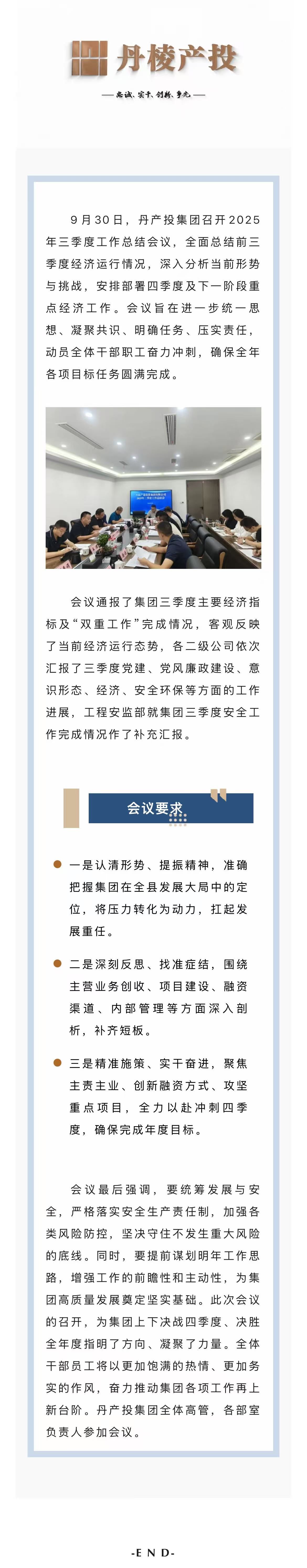 錨定目標(biāo) 精準(zhǔn)施策 全力沖刺全年任務(wù)丨丹產(chǎn)投集團(tuán)召開2025年三季度工作總結(jié)會議