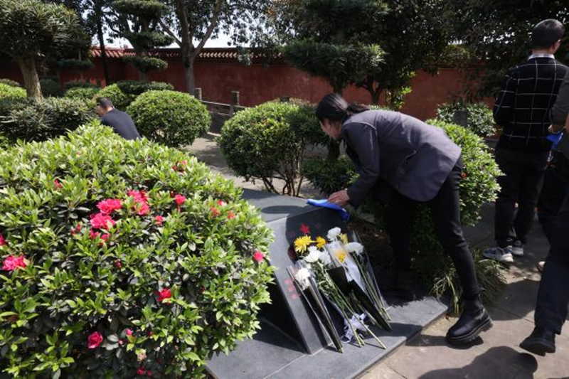 在莊嚴(yán)聳立的革命烈士紀(jì)念碑前,全體人員整齊列隊(duì)、神情肅穆,向革命先烈默哀致禮并敬獻(xiàn)鮮花。隨后,通過(guò)重溫入黨誓詞、擦拭烈士墓碑、學(xué)習(xí)先烈事跡等形式表達(dá)對(duì)英烈的深切緬懷和崇敬之情。